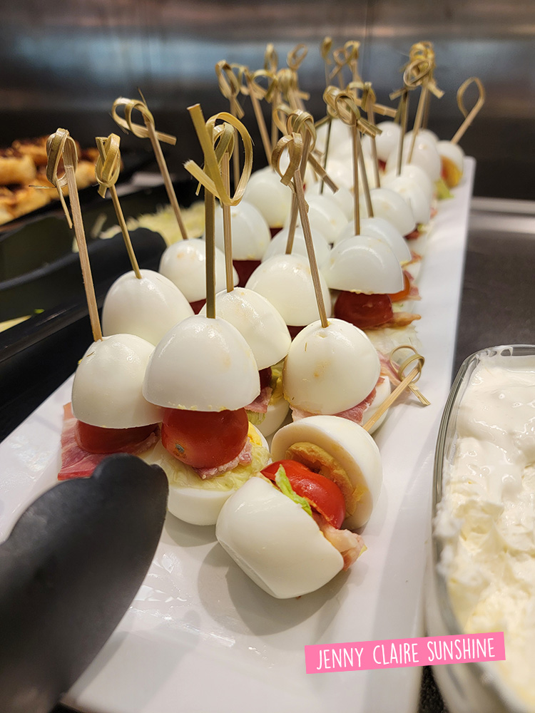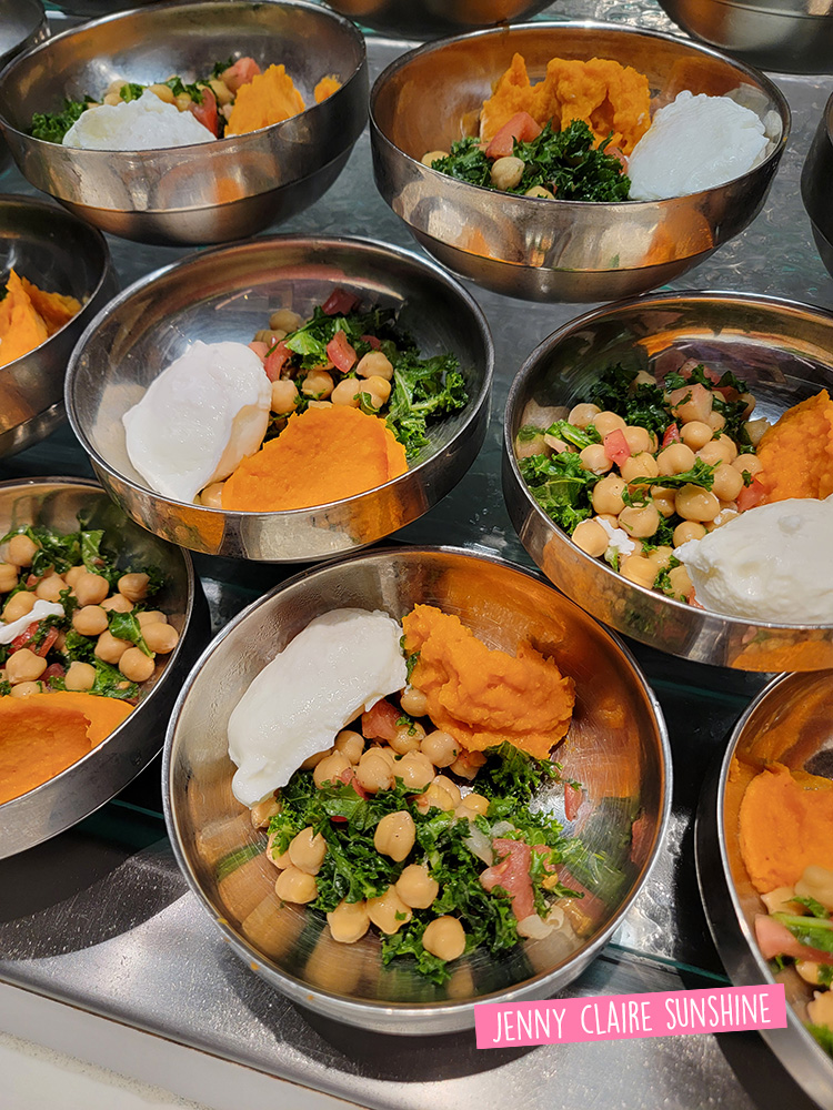 Along the way I noticed a few new items that seemed pretty interesting, especially the Indian-inspired tiffin breakfast of sweet potato puree with a poached egg and chickpea/kale salad. (The pinwheels are covered in a beef mix, and the eggs are deviled with tomato, bacon, and cheese sandwiched between.)